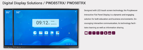 Purplewaveindia Digital Display PWD Series is designed with LED technology to deliver interactive and immersive solutions for education and business environments. Our PWD digital display touch screens are simple o install and feature an intuitive-multiple control touchscreen interface that is easy to use.